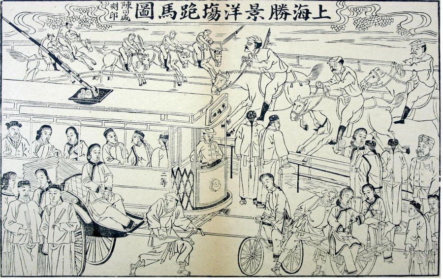 《上海胜景洋场跑马图》陈同盛苏州桃花坞,苏州桃花坞木刻年画博物馆藏