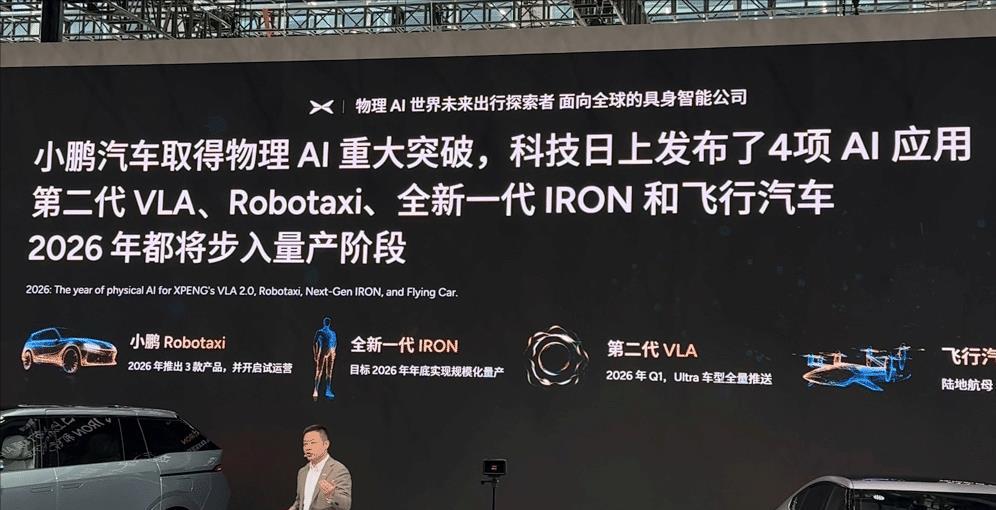 除此之外,小鹏汽车取得 「物理AI」重大突破,宣布第二代VLA、Robotaxi、全新一代IRON、以及飞行汽车易宝配资,都将于2026年进入量产阶段。